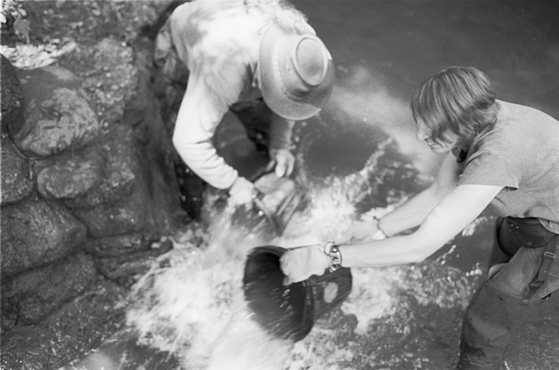 Duncs and Jane bailing out a pond so we can replace a weir.